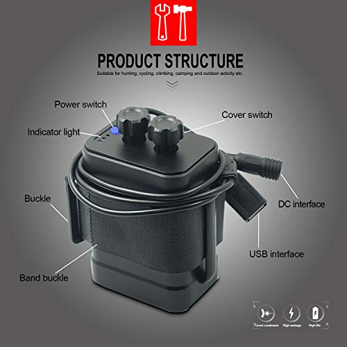 Suggerimento 4: questa custodia può essere collegata a torcia, lampada frontale, telefono cellulare e altri dispositivi con porta USB (5 V) o CC (8,4 V).