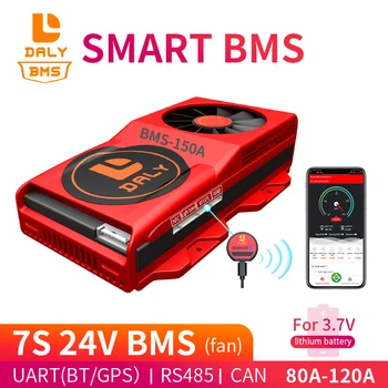 Daly 18650 24v li-ion 7s smart Bms 29.4v Lithium Battery Bms Charging Voltage 29.4v 80a 100a 120a Bms Pcm for e-bike With Fan