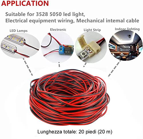 18awg Cavo di prolunga Rosso Nero Filo 2 Pin Parallelo Lunghezza del cavo 66ft Rame stagnato Cavo intrecciato 3528 5050 per LED Strip Horn Altoparlante Cablaggio elettronico