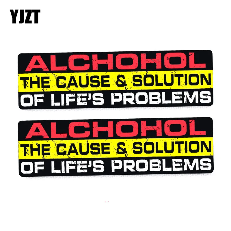 YJZT 2X 18CM*5.3CM Funny ALCOHOL THE CAUSE & SOLUTION OF LIFE'S PROBLEMS Car Sticker PVC Body Decal 12-0104