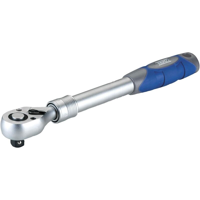 Alyco 192344-Cricchetto estensibile 1/2 72 denti con estrattore di bicchieri con manico in 2 materiali 302-442 mm