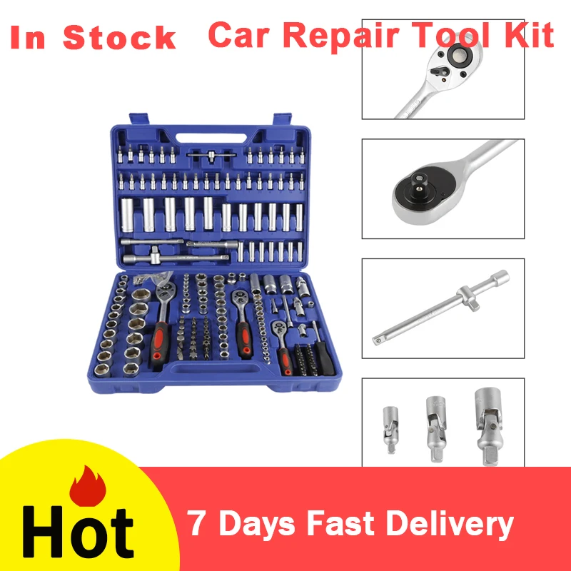 192pcs Car Repair Tool Socket Set Ratchet Torque Wrench Combo Tools Kit Auto Repairing Tool Set With Blue Carrying Case HWC