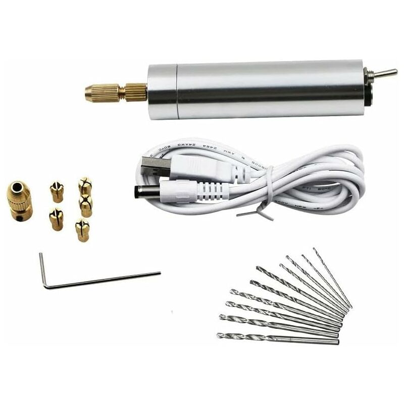 Mandrino interamente in rame a parete spessa: concentricità durevole, velocità di rotazione stabile, durevole, campo di serraggio (1-3 mm), il mandrino può essere bloccato per sostituire la punta in modo rapido e semplice. Design dell'interruttore di alimentazione: design intelligente e coda della smerigliatrice elettrica, bel rapporto, senza influire sul lavoro, facile da cambiare. Motore motore in miniatura: Il motore di movimento è costituito da tutti i fili con anima in rame, con bassa rumorosità, potenza sufficiente, velocità uniforme e alta stabilità. Cavo di alimentazione impiombato: cavo di alimentazione non incorporato, facile da riporre quando non è in uso, può essere collegato a USB. Maniglia comoda: il processo di tessitura opaca della superficie della fusoliera può prevenire efficacemente lo scivolamento. È leggero e compatto e non si stancherà per molto tempo. Spiegazione: Tipo: Trapano elettrico a mano Materiale: lega di alluminio argento Dimensioni: 132*25mm Lunghezza