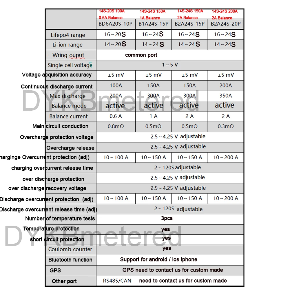 1A/2A Active Balance Battery Protection Board Smart BMS 14S ~ 24S 100A 150A 200A 300A 400A Phone APP Lifepo4 li-ion LTO 16S 20S