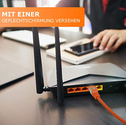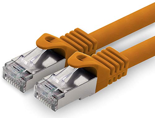 1aTTack.de 1,0m - arancione - 1 pezzo - CAT.7 Cavi di Rete CAT7-10000 MBit/s S-FTP doppia schermatura PIMF 600MHz 4x2xAWG26 / 7 CU rame non contiene alogeni compatibile con CAT5e CAT6 CAT 6a Cat8