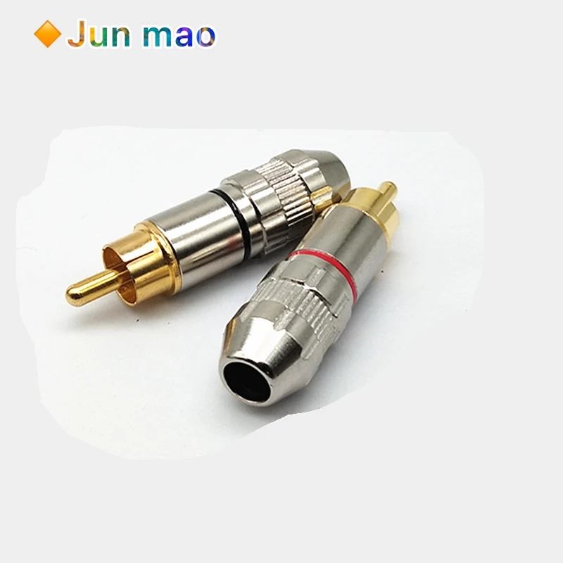 2Pcs 1Balck + 1Red Gold Rca Male Plug Non Solder Audio Video Adapter Connector Male Naar Male Converter voor Coaxiale Kabel