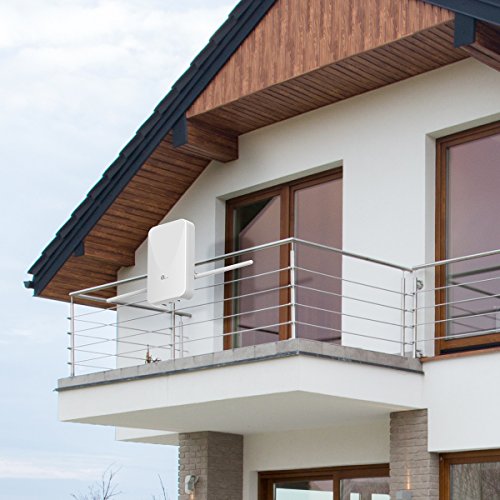 1byone, antenna esterna, per TV digitale, HDTV, ricevitore DVB-T, VHF, UHF, FM. Antenna per segnale digitale terrestre e TV analogica, tecnologia con circuito SMD, rivestimento protettivo contro i raggi UV, impermeabile e design compatto
