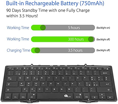 1byone Tastiera Pieghevole Wireless Retroilluminata, Tastiera Portatile Wireless con Connessione Cablata e Wireless per Android/iOS/Windows, Nero