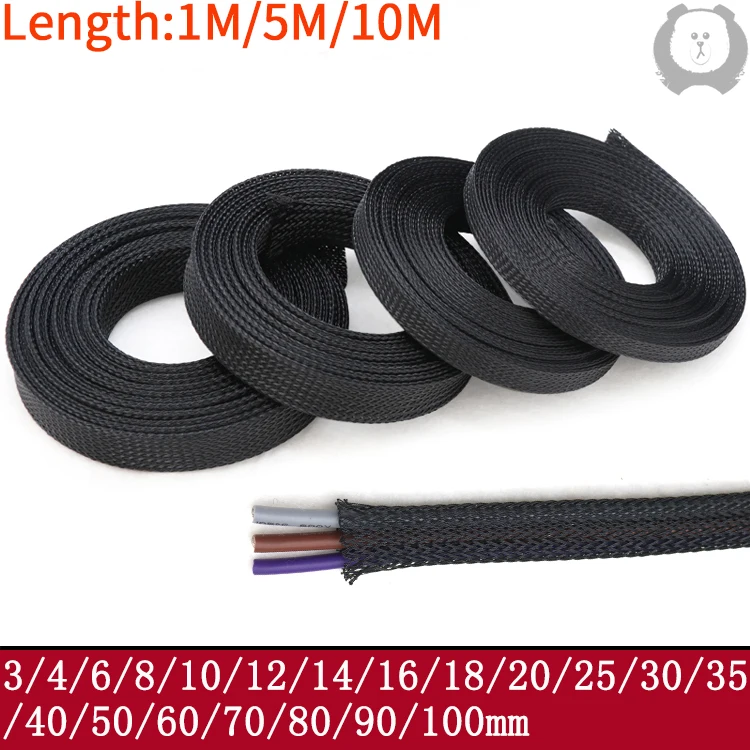1M/5M/10M Black PET Braided Sleeving Diameter 1~100mm Insulated Cable Data line protection Wire Cable Flame-retardant nylon tube