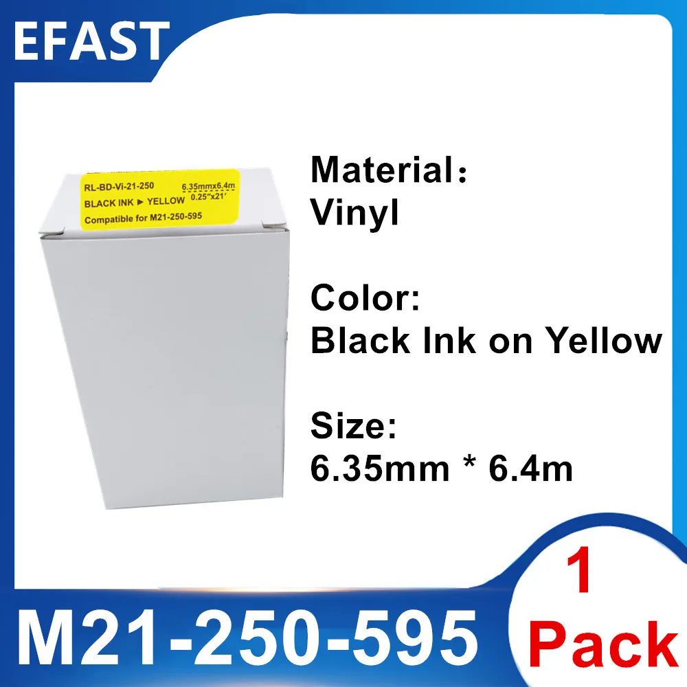 1Pack M21 250 595 Vinyl Label maker Ribbon Black On Yellow For BMP21 PLUS Printer Black On White M21-250-595 6.35mm * 6.4m