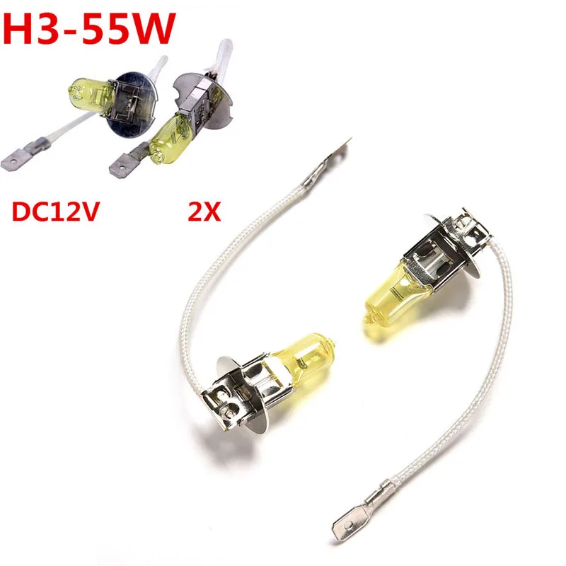 1pair 12V 55W H3 HeadLight Lamp Dark Golden Yellow Glass Replacement Car Halogen Light Bulb Super Brighter