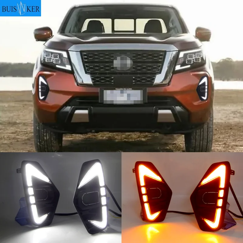 1Pair Car light For Nissan Navara NP300 2020 2021 LED Daytime Running Light DRL with yellow signal