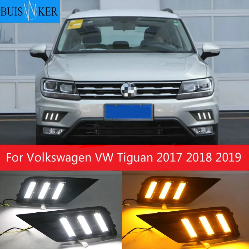 1Pair Car light for Volkswagen VW Tiguan 2017 2018 2019 DRL Daytime Running Light with Yellow Turn signal fog lamp