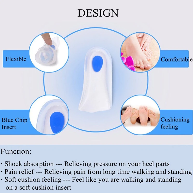 1Pair Foot Care Massage Silicone Gel Heel Cups Shoe Inserts for Plantar Fasciitis, Sore Heel Pain, Bone Spur & Achilles Pain
