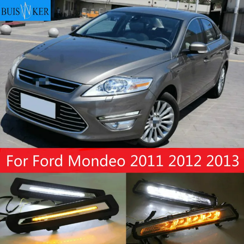 1Pair DRL For Ford Mondeo 2011 2012 2013 Daytime Running Lights Fog head Lamp cover with yellow turn signal