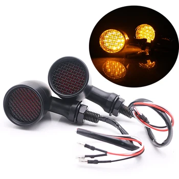 1pair Motorcycle aluminium Retro Bullet LED Turn Signal Brake Light Mesh Lens For Harley Chopper Bobber Yamaha Honda Kawasaki