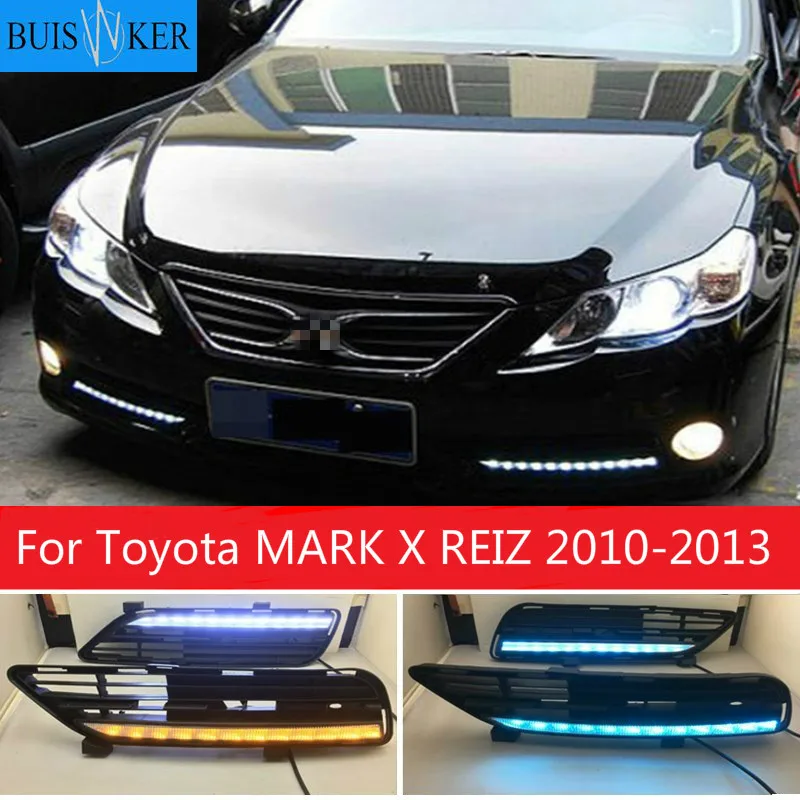 1Pair DRL For Toyota MARK X REIZ 2010-2013 LED DRL Daytime Running Light With Turn Signal Fog Lamp
