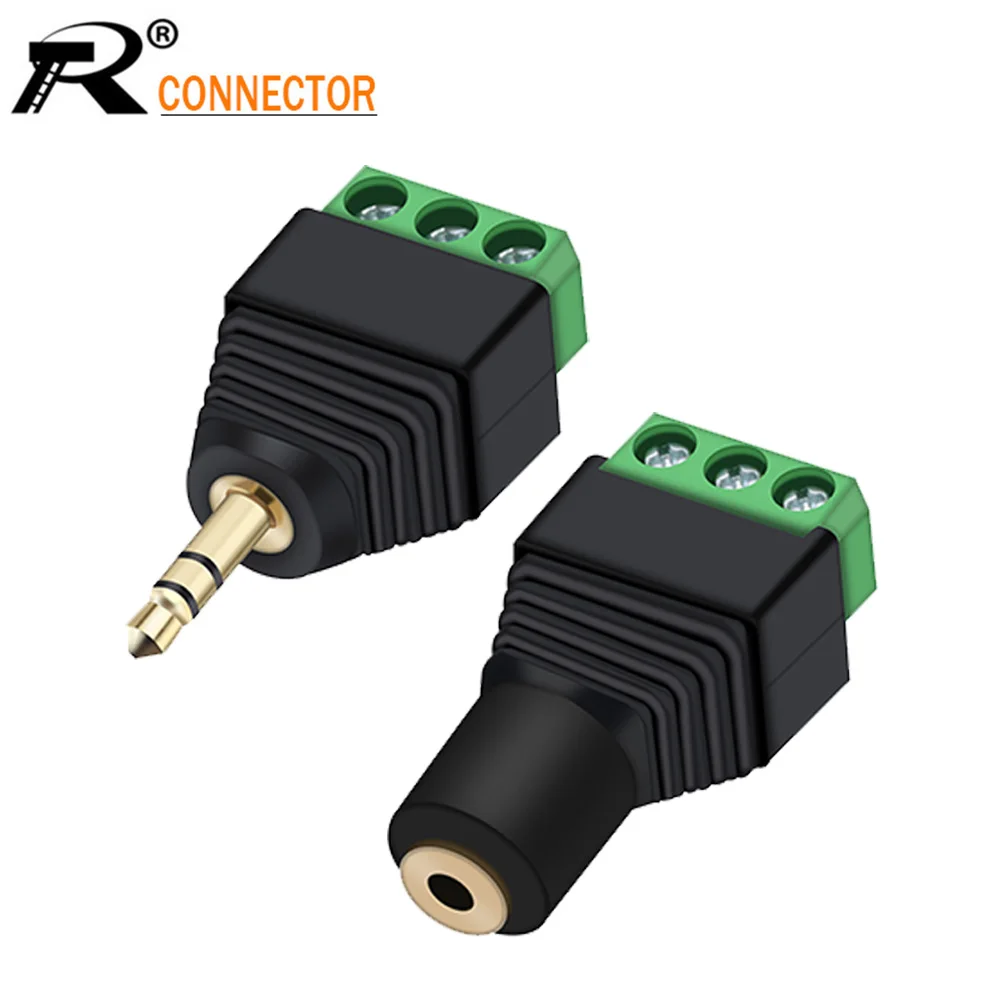 1pair/2pcs 3.5mm 3ploe 1/8 Inch Stereo Male Plug to AV Screw Video Balun Terminal Jack 3.5 mm Male 3 pin Terminal Block Plug