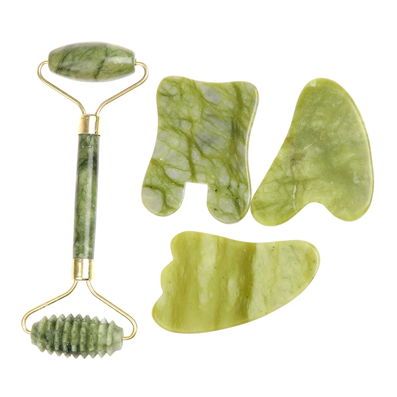 1Pcs/1Set Double Heads Facial Massage Roller Guasha Board Natural Jade Stone Face Lift Body Skin Relaxation Slimming Beauty Tool
