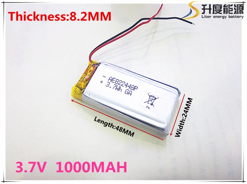 1pcs/lot 3.7V lithium polymer battery 822448 1000mah MP3 MP4 MP5 battery