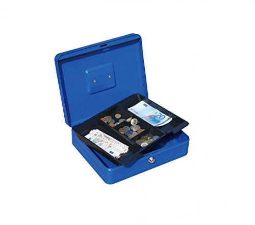 Con inserto in plastica 5 scomparti (3 scomparti per monete, 2 scomparti per banconote), 2 chiavi, dimensioni: 300 x 240 x 90 mm (B x H x T), materiale: In lamiera d' acciaio, tratto senza cuciture