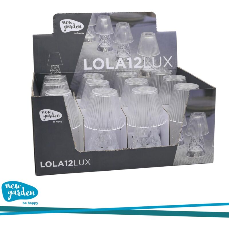 Lampada da tavolo NewGarden LOLA LUX 12 batteria design cristallo IP44:Colore: Trasparente:Altezza= 12 cm:Larghezza= 6,5 cm:Lunghezza= 6,5 cm:Peso= 0,81 kg:Utilizzo= giardino, balcone, terrazza, lounge, hotel, ristorazione