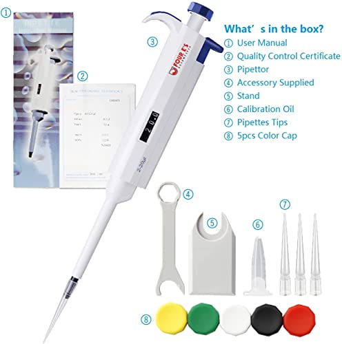 2-20ul, 20-200ul, 100-1000ul Micropipette, Four E'S Scientific Single Channel Pipettor 3 Pack Micro Pipette Set, Volume regolabile autoclavabile Pipetta Pipetta Pipetta