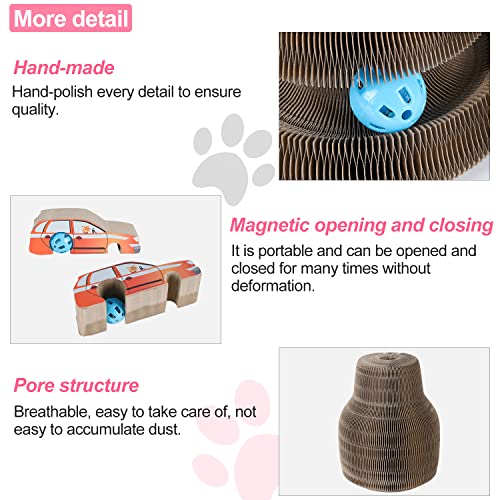 Design flessibile: Il nostro tiragraffi per gatti con organo magico rotondo è pieghevole per risparmiare spazio, la pista a sfera per gatti è collegata a entrambe le estremità tramite magneti, La palla rotolerà sempre sulla pista, tenendo occupati e divertiti i tuoi gatti.