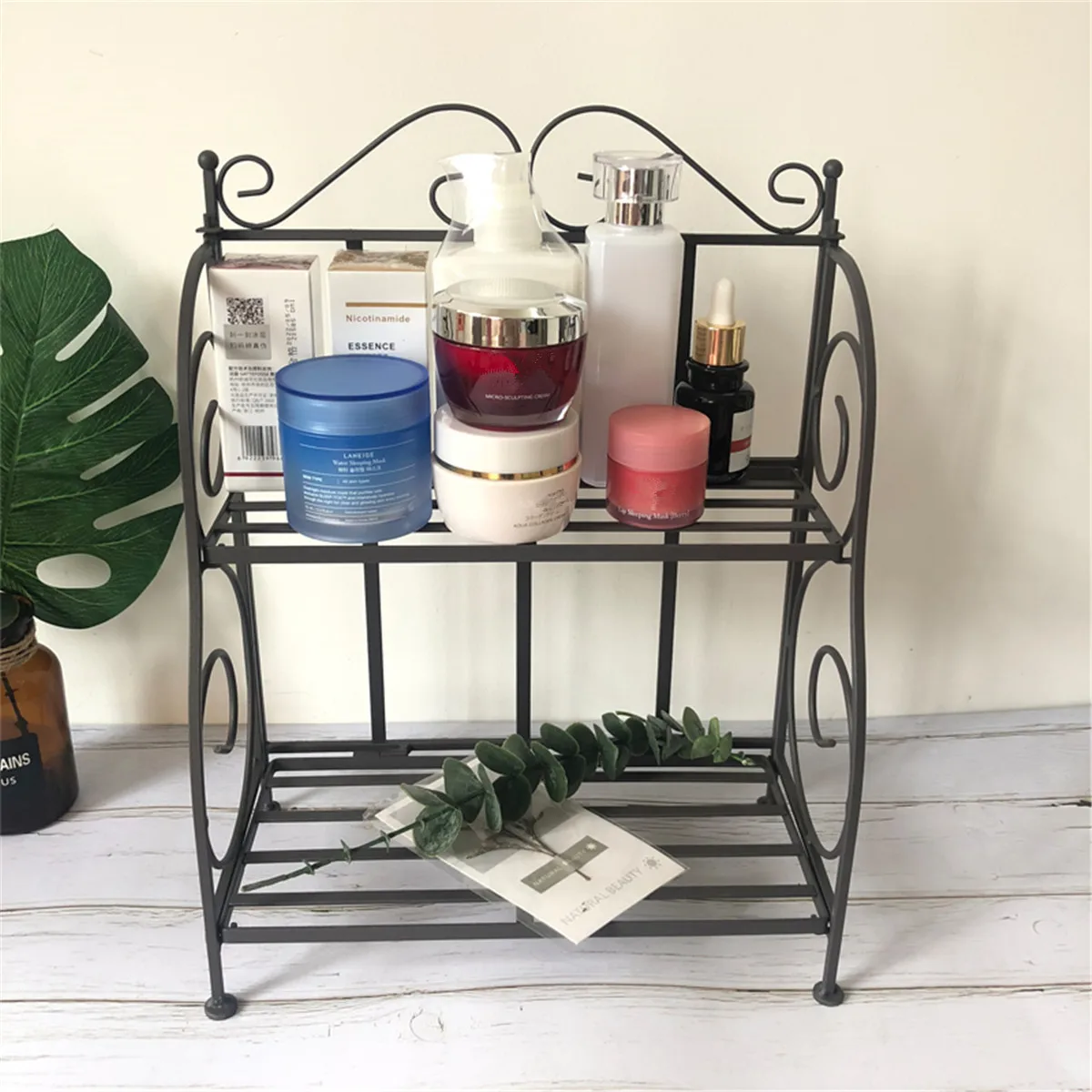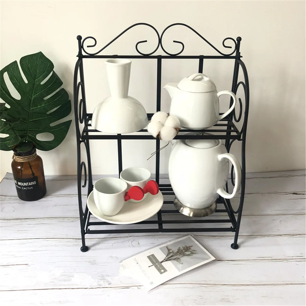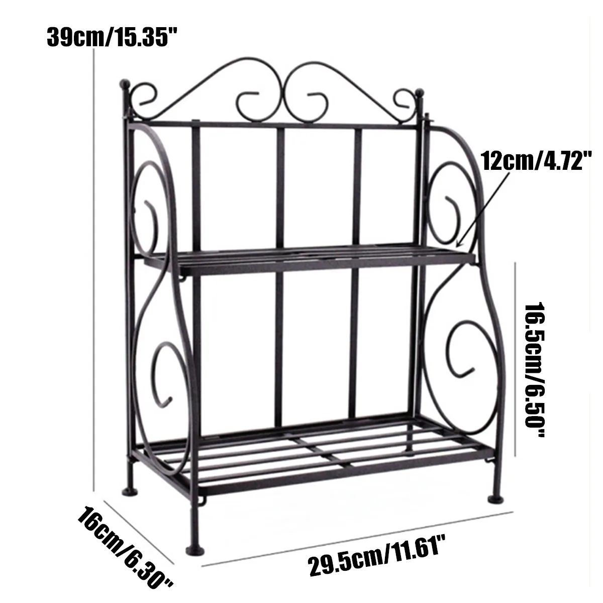 2-layers Iron Plant Stand Shelf Rack Simple Indoor Coffee Bar Garden Balcony Flower Pot Shelf Multi-use Shelf Home Decoration