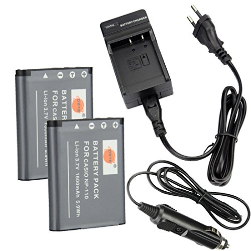 DSTE 2-Pacco Ricambio Batteria + DC104E Caricabatteria Compatibile per Casio NP-110 Exilim EX-FC200S EX-Z3000 EX-Z3000BN EX-Z3000PK EX-Z3000RD EX-Z3000SR
