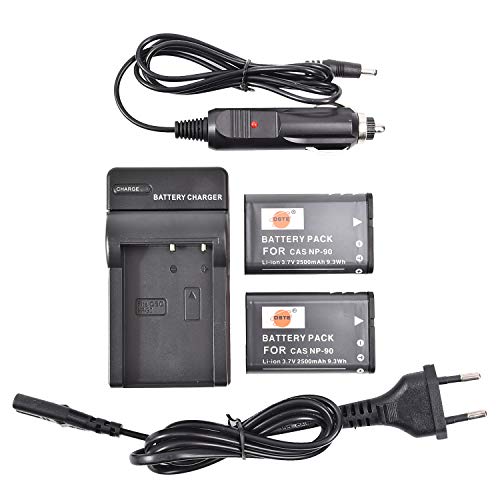DSTE 2-Pacco Ricambio Batteria + DC94E Caricabatteria Compatibile per Casio NP-90 Exilim EX-H10 EX-H15 EX-H20G EX-FH100 EX-FH100BK