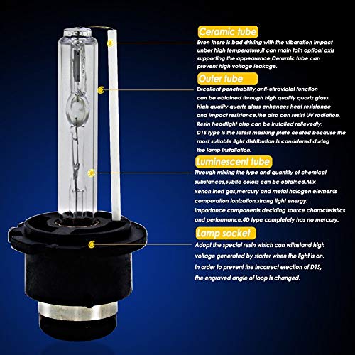 【Risparmio energetico】 Tensione: CA 12V. Potenza: 35W +/- 3W. Lampade al fosforo Xenon nascoste Con il 35% in meno di consumo energetico, fino a 3500 ore di durata prevista, 5 volte più lunghe rispetto alle lampadine alogene originali (OEM).