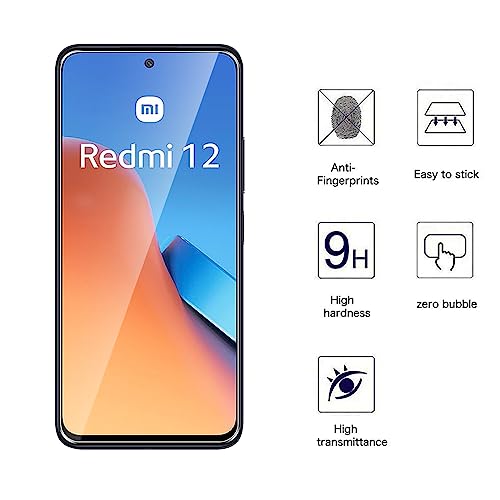 WFTE [2-Pezzi Vetro Temperato per Xiaomi Redmi 12 Pellicola Protettiva [Durezza 9H][ Anti graffio][Anti-Impronte][Senza Bolle] Pellicola Protettiva per Xiaomi Redmi 12
