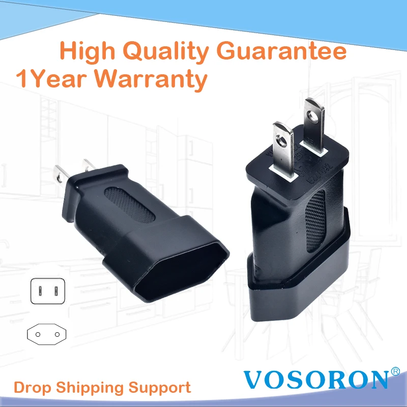 US 2-Prong Male to European EU Female Travel Adapter 1-15P to CEE7/16 Power Adapter US Plug to Euro Receptacle Connector