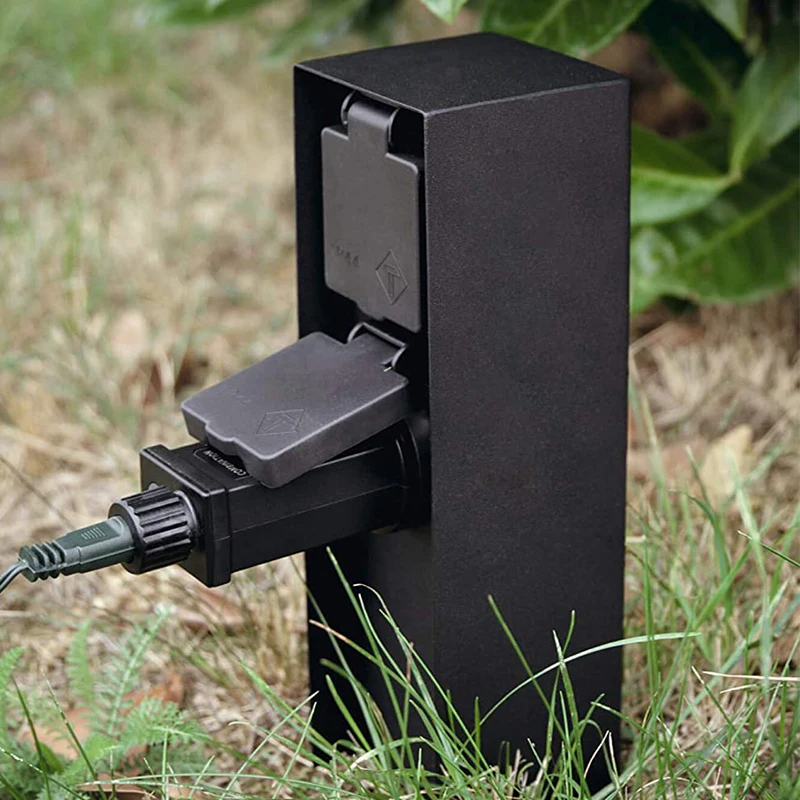 2-Way Garden Socket Power Socket EU Plug Stainless Steel Waterproof Power Supply Energy Column for Garden décor Outdoor Socket