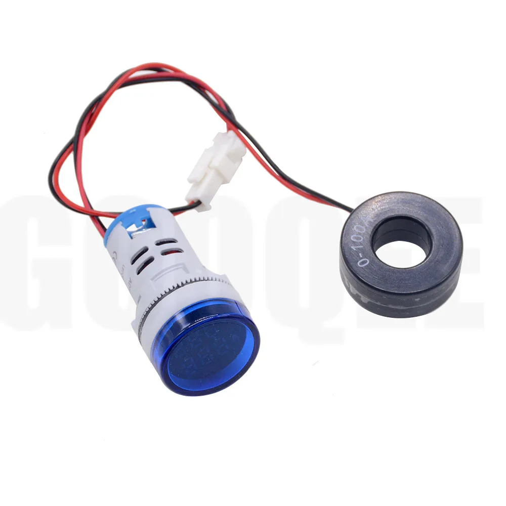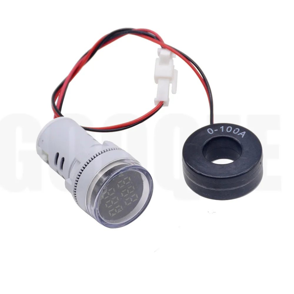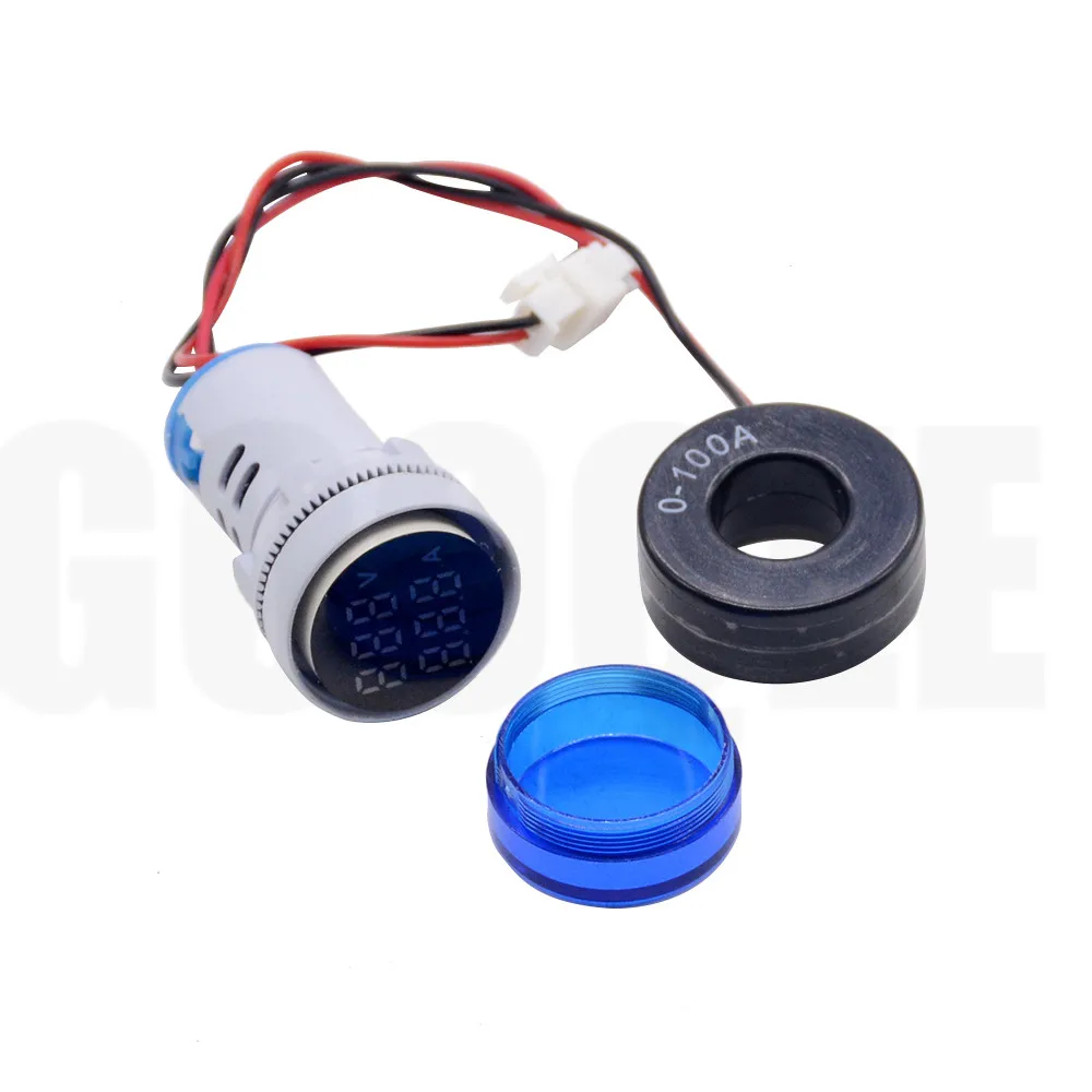 22mm AC 20-380V 0-100A Round Mini Digital Voltmeter Ammeter Amp Volt Voltage Tester Meter Dual LED Indicator Pilot Lamp Light
