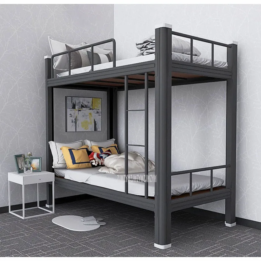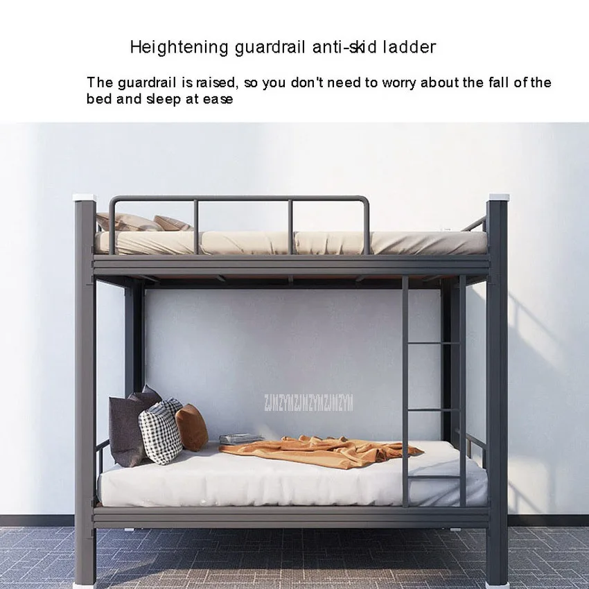 200*90cm Double-layer Steel Frame Bed Child Student Dormitory Bed Children Bedroom Furniture With Safety Guardrails and Ladder