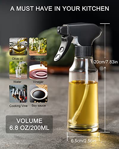 200ml Spruzzatore Olio di Vetro, Nebulizzatore Olio Spruzzino Olio per Friggitrice ad Aria Olio Spray per Friggitrice ad Aria Spray per Olio da Cucina con Effetto Nebbia Fine con Ugello Regolabile