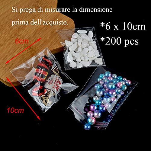 200pz 6 * 10cm Bustine Trasparenti per Confetti Sacchetti Plastica Alimentari con Striscia Adesiva Bomboniere Regalo Caramelle