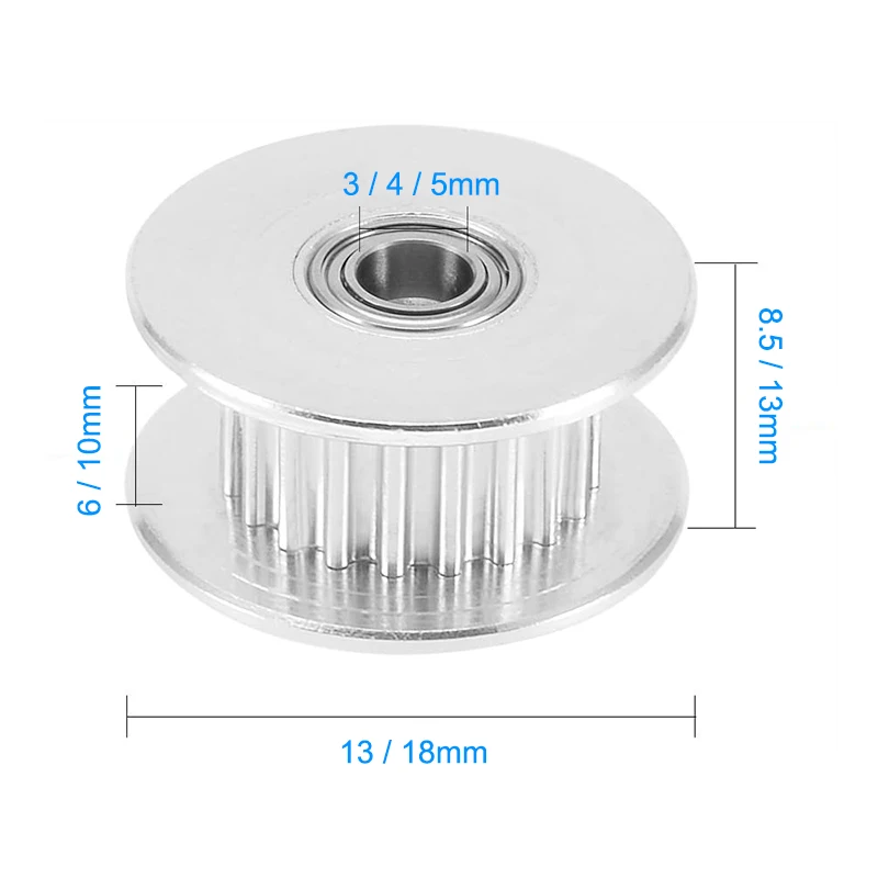 2GT 20/16mm Teeth Wheel Idler Pulley Bore 3mm 4mm 5mm with Bearing for GT2 Timing Belt Width 6MM/10MM