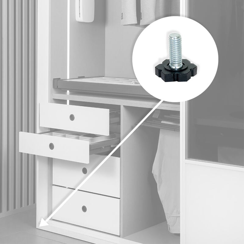 Piede livellatore per la regolazione in altezza dei mobili fabbricato in acciaio e plastica e fornito in set da 20 pezzi. Servono di un dado M6 per l'assemblaggio (non inclusi nella confezione). Permettono mettere in bolla i mobilli di casa (tavoli, sedie, divani, ecc.) grazie alle loro viti filettate M6x25mm. Base esagonale in plastica nera per proteggere il pavimento.