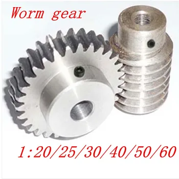 1 sets 1M Worm gear with rod 20/25/30/40/50/60 teeth steel worm gear reduction ratio:1:20/25/30/40/50/60 worm rod bore 8mm