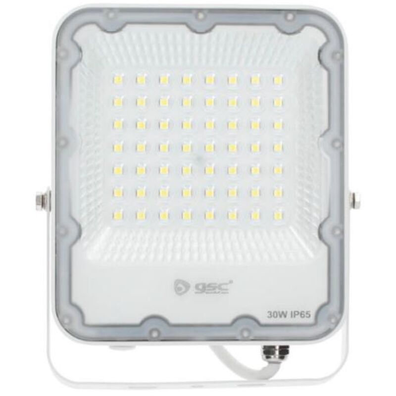 Proiettore LED ultrasottile in alluminio Materiale: alluminio. Colore bianco. Uso esterno. 50W 5500Lm 4000K 204,5x228x29mm