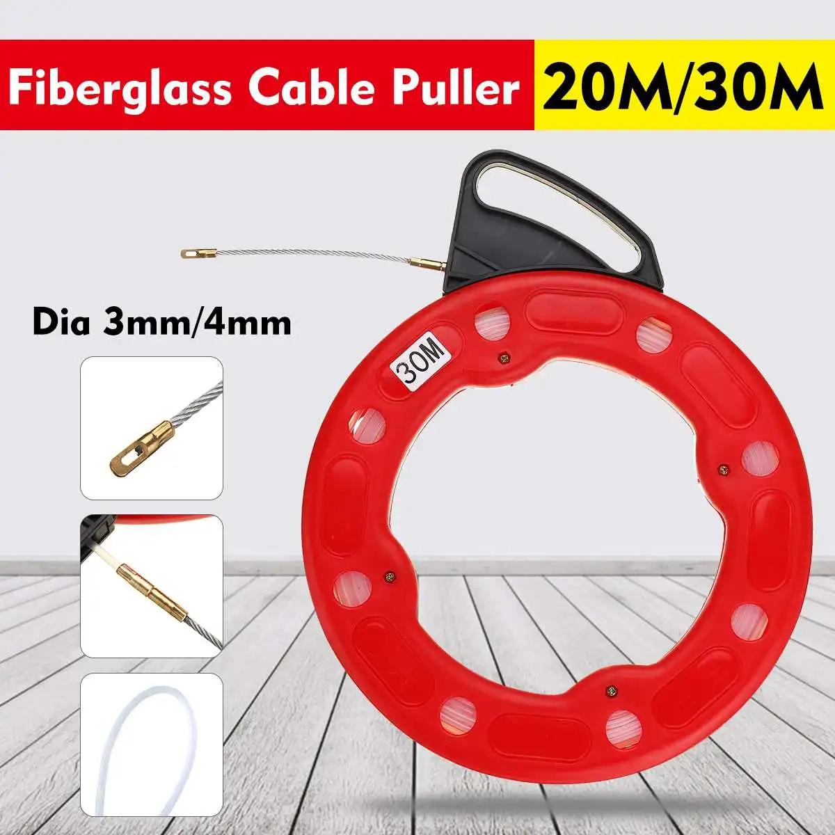20/30M Fiberglass Fish Tape Reel Puller Flexible Nylon Conduit Conduit Ducting Rodder Pulling Wire Cable 3.0/4.0mm