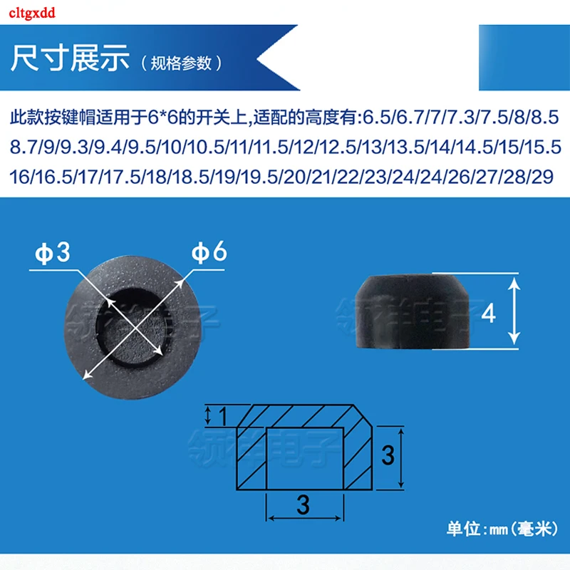 20pcs Clear Tactile Button Caps Plastic Cap outer diameter 6 High 4 Inner hole 3 Hat for 6*6mm Micro Tact Switch G63 6X6 mm
