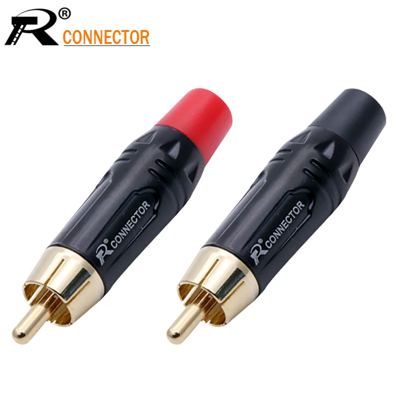 20pcs RCA Connector High quality RCA male Connector gold plating audio adapter black&red pigtail speaker plug for 7MM Cable