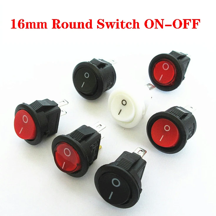 20pcs 16mm Diameter Small Round Boat Rocker Switches Black Mini Round 3A 2 Pin ON-OFF Rocker Switch