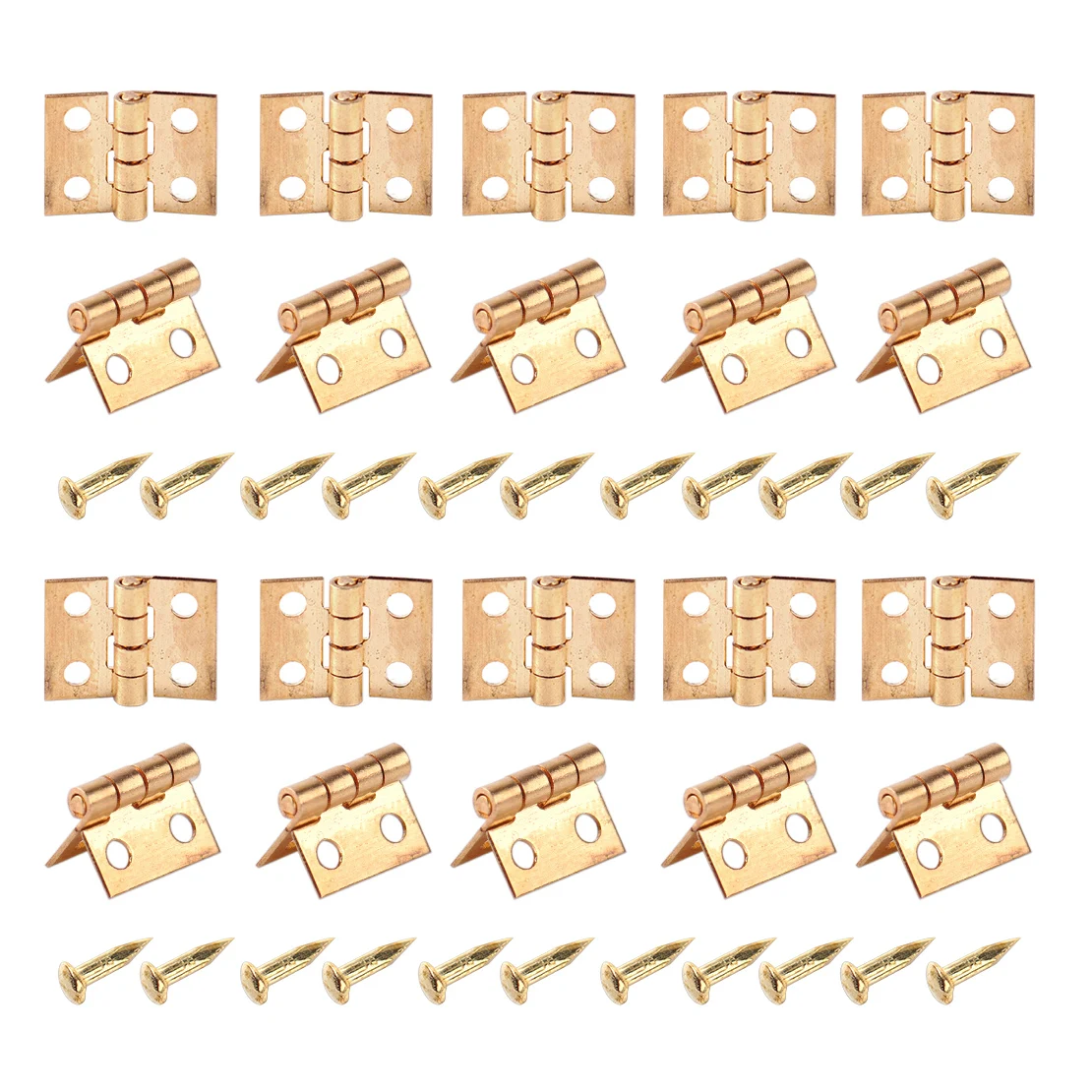 20pcs Golden Miniature Hinges with Nails Screws fit for Dollhouse 1/12 Scale Cabinet Furniture Closet