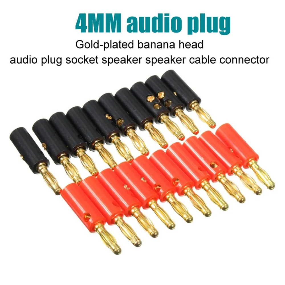 20pcs Gold Plated 4mm Audio Speaker Cable Lead Banana Plug Connector Adapter for Amplifier Audio Wire DIY Soldering