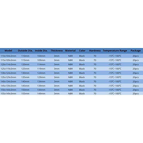 20pcs spessore 3mm gomma nitrile O-ring Grommets 110-155mm OD NBR Anelli Lavatrici, 115x109x3mm